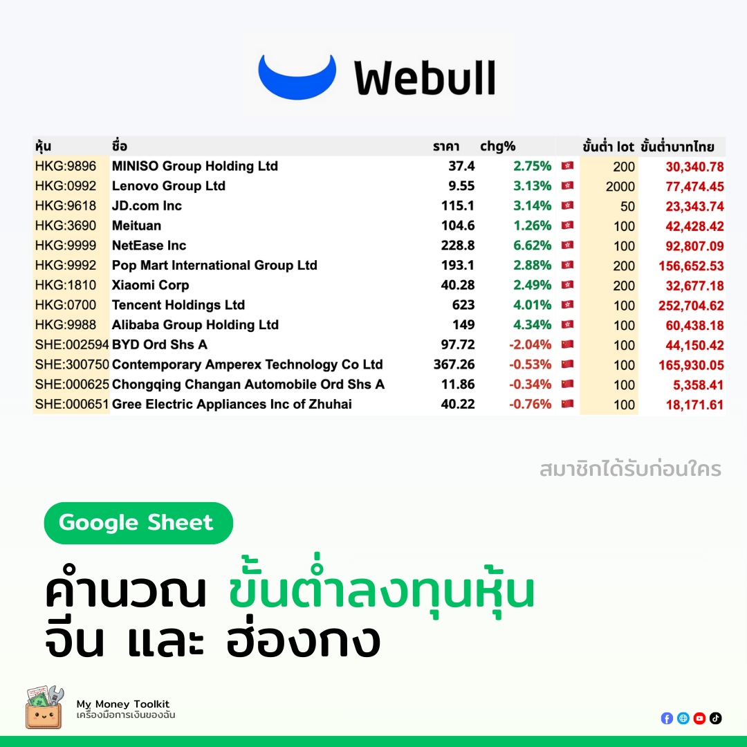 Sheet คำนวณราคาขั้นต่ำหุ้นฮ่องกง